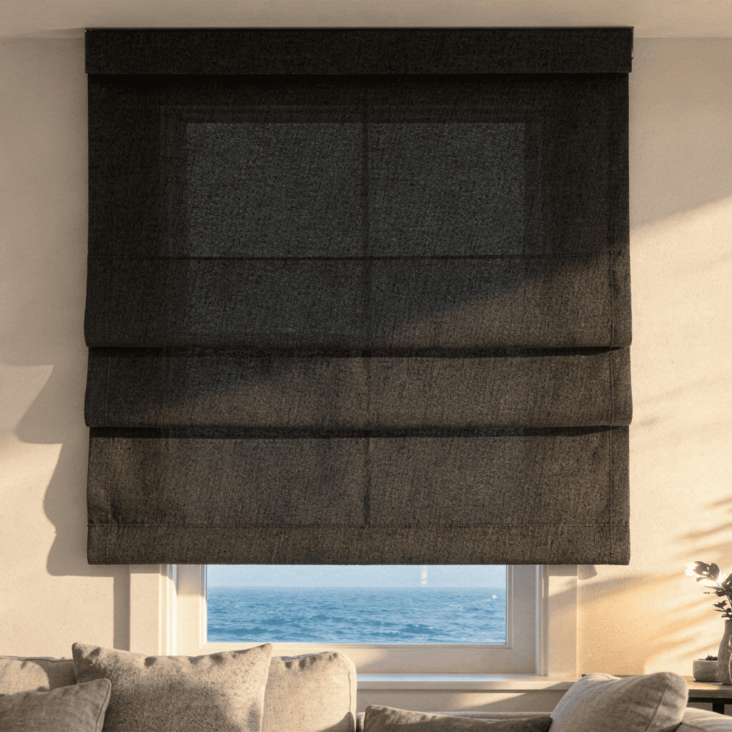 Choose from flat, relaxed, or soft-fold Roman blind designs.