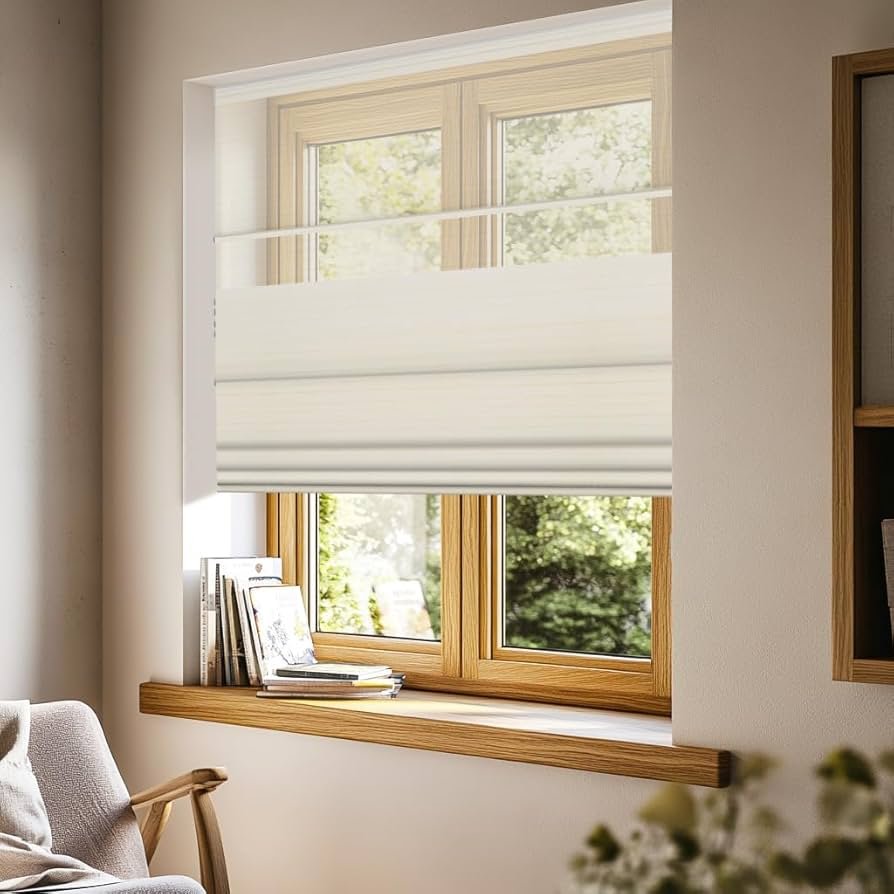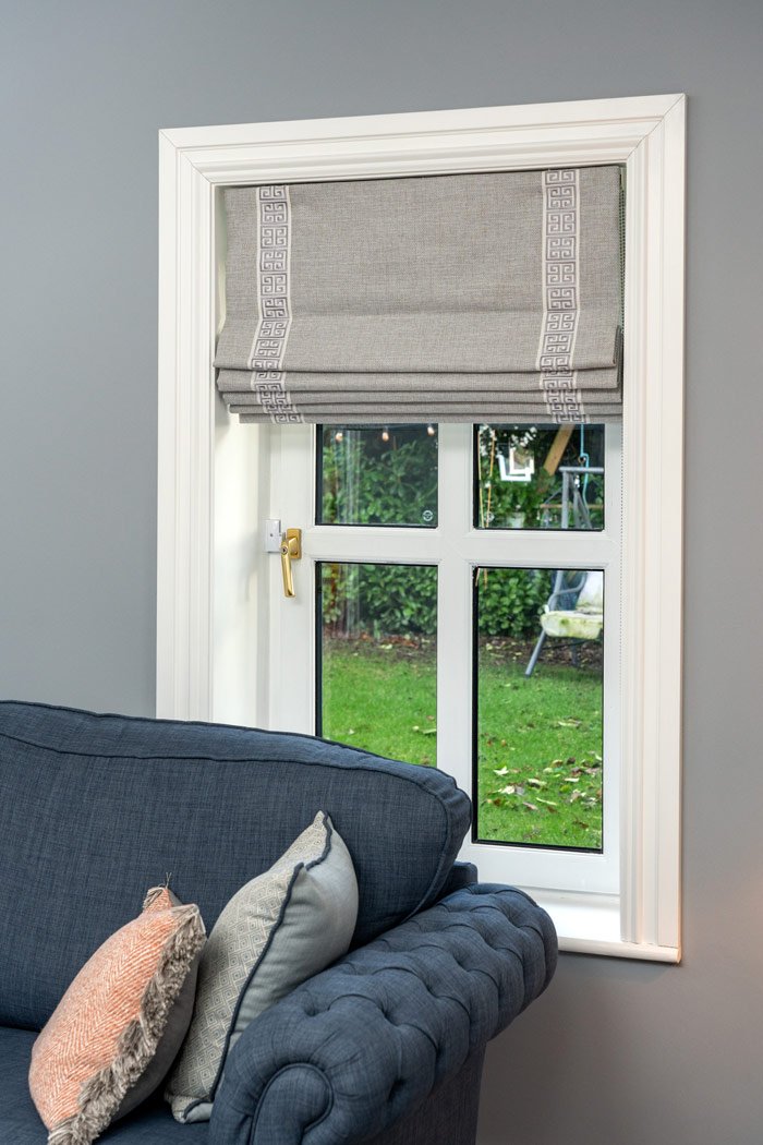 Choose from flat, relaxed, or soft-fold Roman blind designs.